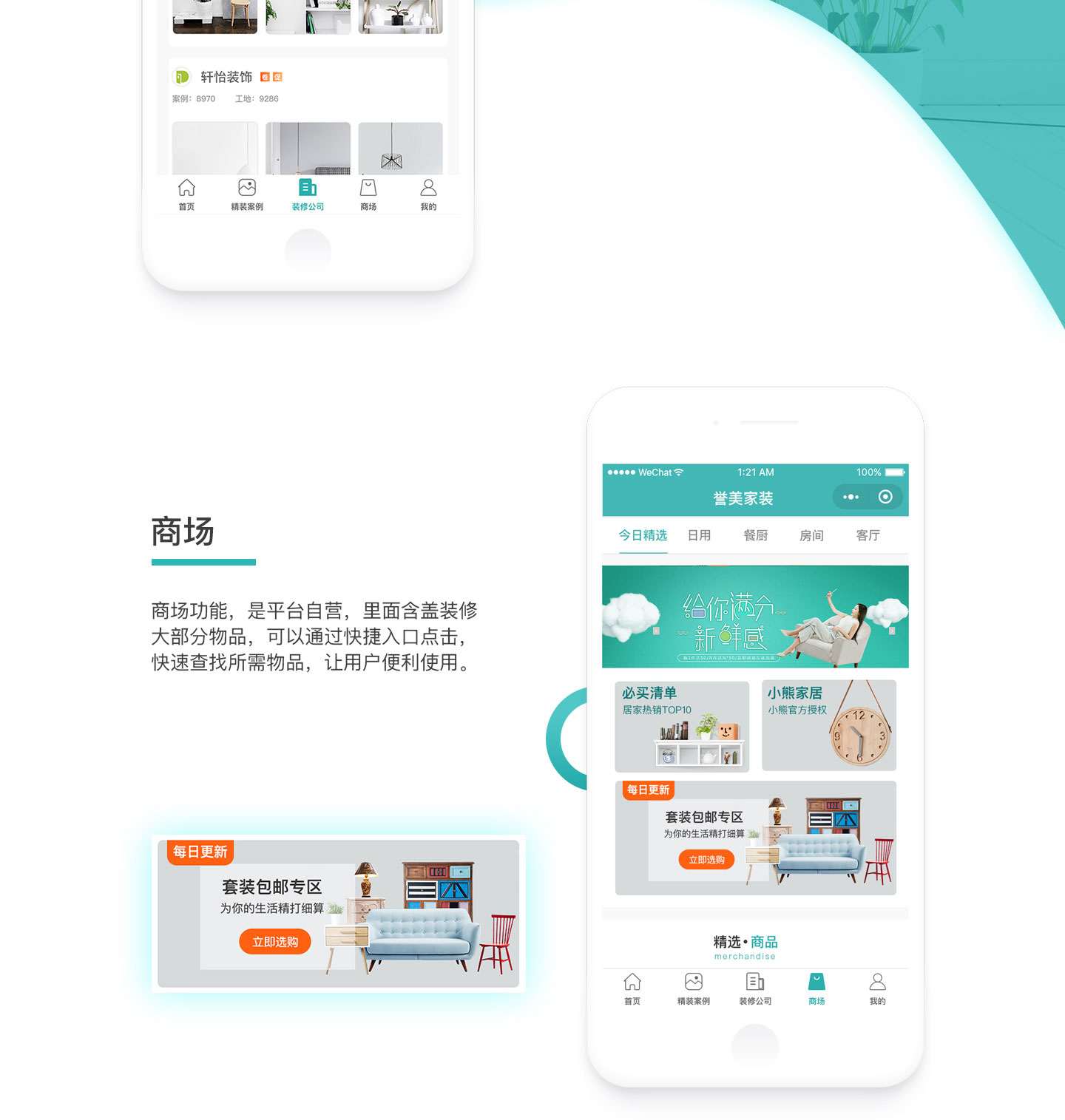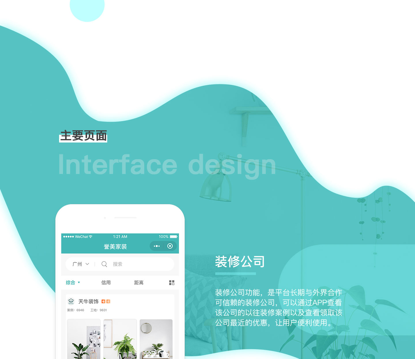 譽美家裝是一款家裝類微信小程序,利用互聯網的優勢對接家裝圈的各方資源以及需求,將用戶、設計師、設計公司、線上家裝淘寶四方資源進行充分整合,再加上平臺自營商城,讓用戶充分分享便利與實惠的同時滿足設計師和設計公司的需求。