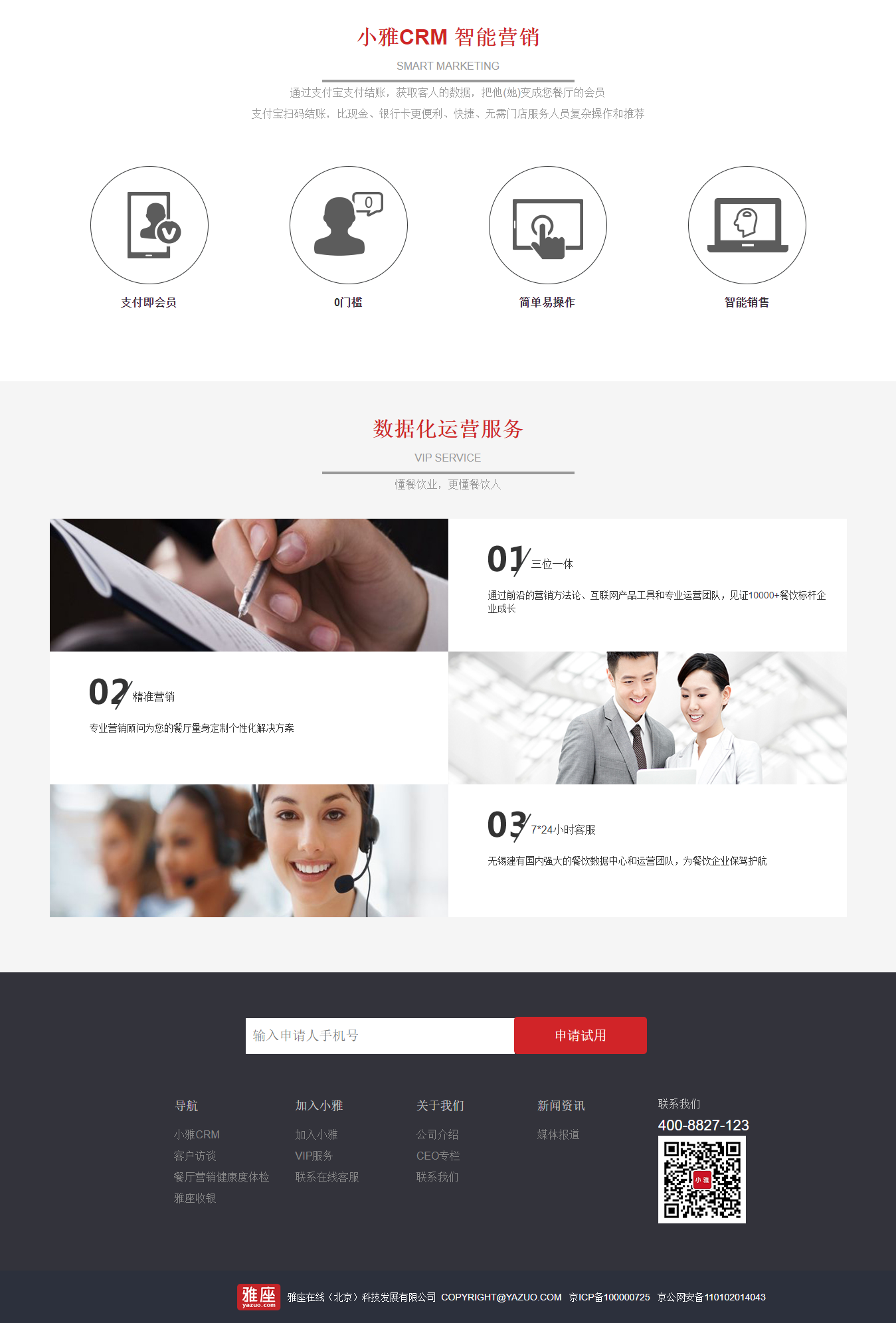 雅座在線(北京)科技發展有限公司,以下簡稱雅座,國內餐飲行業營銷云服務商,成立于2006年5月。總部在北京,在上海、無錫設有分公司,在無錫iPark軟件園建有目前國內的餐飲