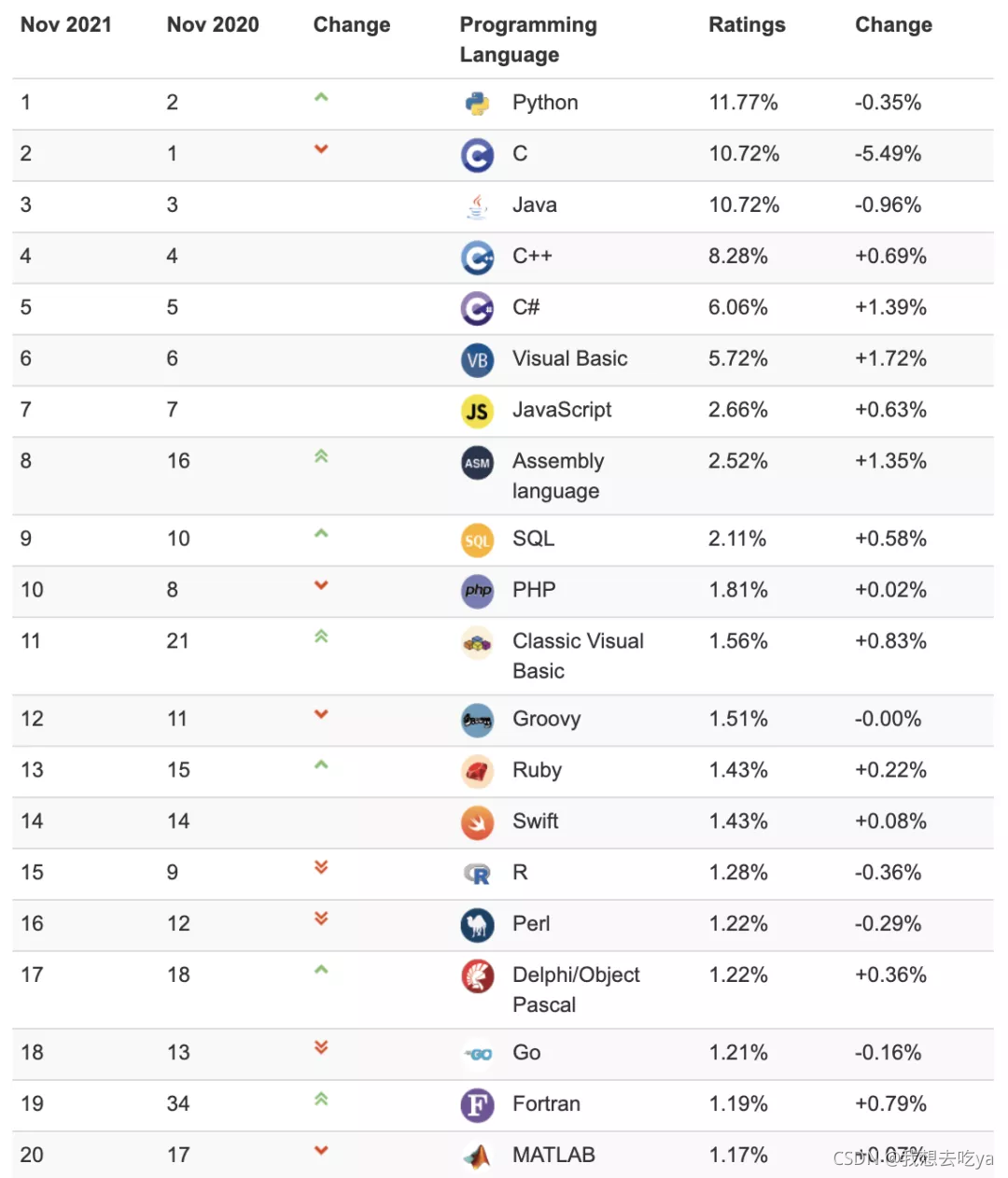 11月Tiobe 編程語(yǔ)言排行榜前20名